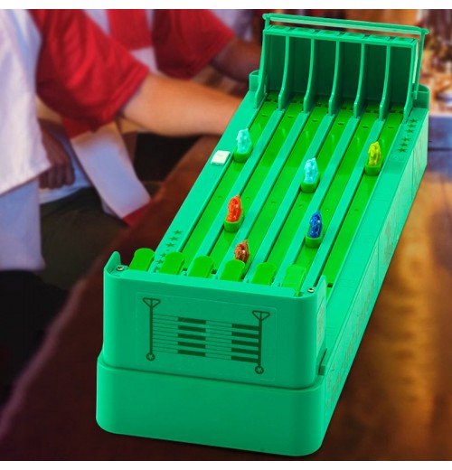 ONE-BUTTON INTERACTIVE: Operated by a simple on/off button that allows you to control the horses' movements. Start the race and watch as the horses gallop towards the finish line, creating a suspenseful and interactive gameplay.
