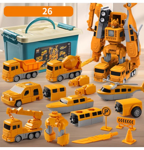 TRANSFORMIERBARES DESIGN: Die Fahrzeuge des Sets, wie z. B. ein Lastentrger, ein Gabelstapler, ein Bagger usw., knnen zu Robotern zusammengebaut werden, die für endlose Unterhaltung und Erkundung sorgen.