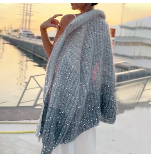 - 1×gestrickte Pulloverjacke mit einfarbigen Pailletten