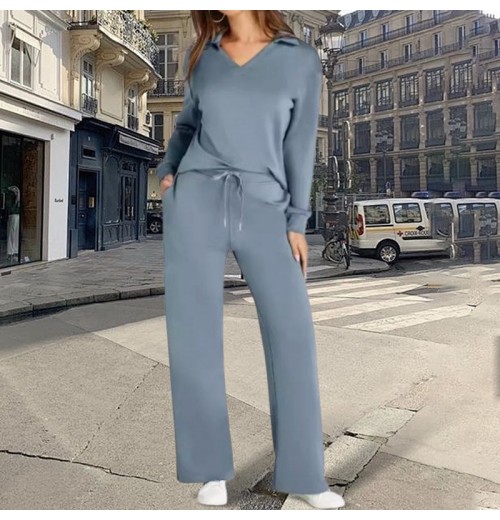 SOPHISTIZIERTES DESIGN:Das Set besteht aus einer V-Ausschnitt-Tunika mit einem schicken Reverskragen, der Eleganz mit Komfort verbindet und einen stilvollen Look bietet, der perfekt zum Entspannen oder für lssige Ausflüge geeignet ist.