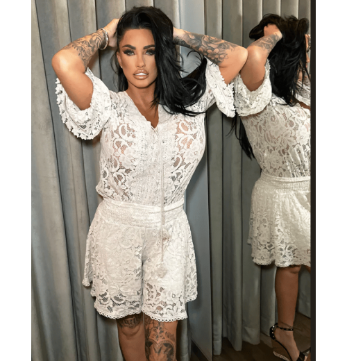 LETZTER VERKAUFSTAG 49% RABATT -Lssiger kurzer Spitzenanzug mit V-Ausschnitt