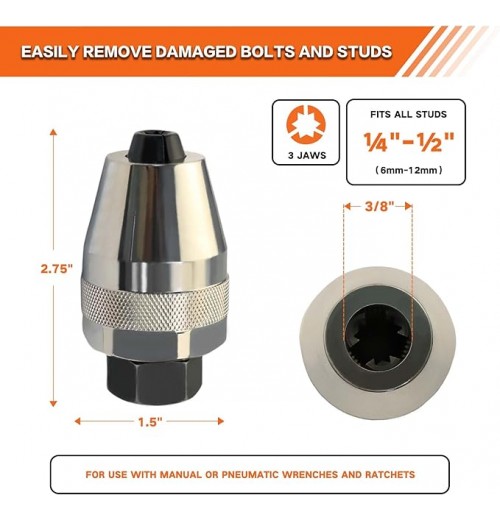 - Werkzeugspezifikationen: Dieses beschdigte Tool für Bolzen- und Bolzenextraktor verfügt über einen 3/8 -Zoll -Antrieb und arbeitet mit manuellen oder pneumatischen Aufprallschlüssel und Ratschen, um beschdigte Schrauben und Stifte für 1/4 -1/2 -Zoll schnell und einfach zu extrahieren (6 - 12 mm) Bolzen