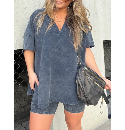 Dieses übergroe Boyfriend-T-Shirt kommt mit einem Paar passenden Biker-Shorts, sexy-chic und energiegeladenem Style. Flieend und bequem strukturierte Verarbeitung ist weich und dehnbar, attraktiv für den Sommer! Sobald Sie diese anhaben, werden Sie sie nie wieder ausziehen wollen.